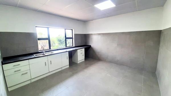 Features include a modern kitchen, storeroom/strongroom, male and female bathrooms, skylights for a pleasant working environment, balcony pause area and lots of parking.