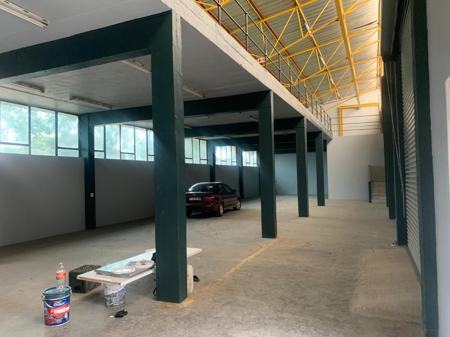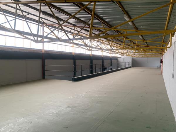 Secure a versatile 500 sqm industrial unit for rent in Spartan, Kempton Park. This adaptable space features high ceilings, durable concrete flooring, and an open-plan layout, ideal for diverse commercial or industrial operations. Natural light enhances the interior, complemented by functional lighting. The unit includes a kitchen and two bathrooms, with a mezzanine level offering additional usable area. External amenities boast a large paved yard, a loading dock, and a roll-up door for efficient logistics. Ample parking is available with 5 bays, all within a securely fenced property in a prime industrial location.