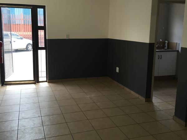 A well-maintained mini warehouse is now available to let, offering a practical solution for small businesses, light manufacturing, or storage operations. The unit features a large roller shutter providing direct access to the warehouse area, with good height and excellent-quality floors that support efficient operations. A small office component includes a reception area, kitchenette, ablutions, and first-floor offices, providing functional administrative space within the unit.