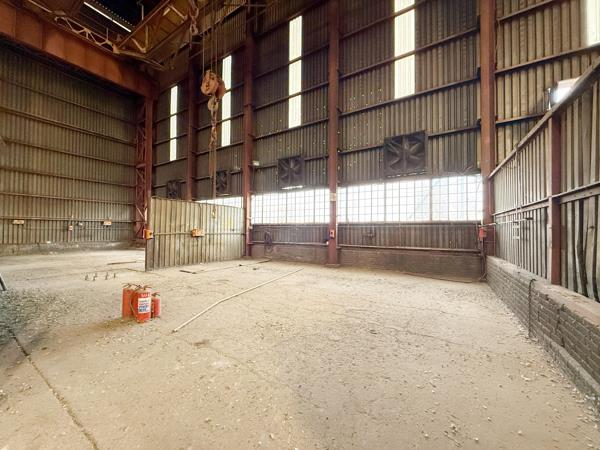 This large-scale industrial property in Duncanville, Vereeniging, provides 10 000m2 of functional space on an expansive 43,650m2 stand. Designed for heavy-duty operations, the facility offers impressive height, multiple gantry cranes, and excellent access for super-link vehicles, making it highly efficient for manufacturing or engineering operations.