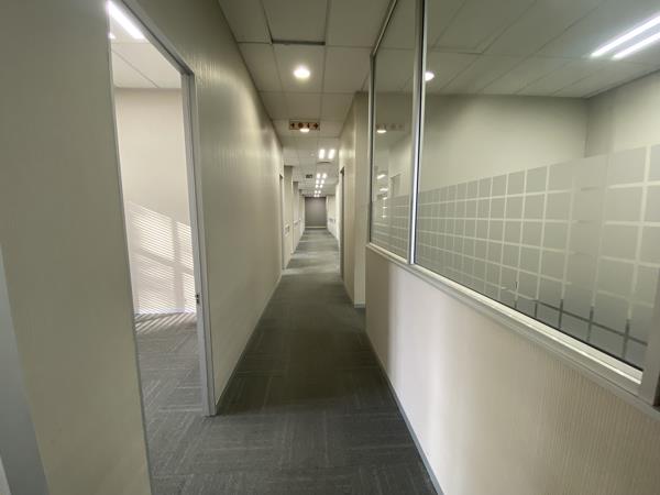 This well-appointed ground floor suite offers a practical and professional workspace ideal for a growing business. The layout features a spacious open-plan area fitted with workstations, five private offices, a 10-seater boardroom, and a kitchenette with a comfortable staff pause area. The office park provides a secure, access-controlled environment with landscaped surroundings and ample parking. There is convenient access to main roads and amenities and is ideal for professional or corporate tenants. There is a tenant installation allowance equal to two months gross rental for leases of three years or longer, at a 6.5% annual escalation. Occupation: 1 November 2025
