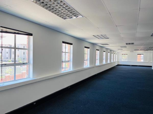 This first-floor 362m2 office suite at Fourways Golf Park offers a prime opportunity for businesses seeking an A-Grade workspace in a serene and prestigious environment. It is currently open-plan, with smart carpeting in place already. Alterations to the fit out are welcome, supported by a generous tenant installation allowance.