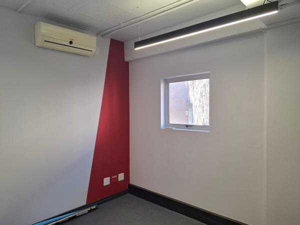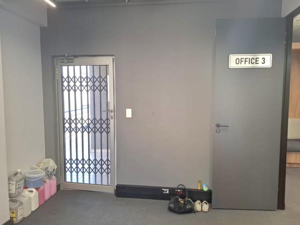 Unfurnished GROUND floor office space To Let, 180 sq m, with biometric and facial recognition SECURITY and air-conditioning.