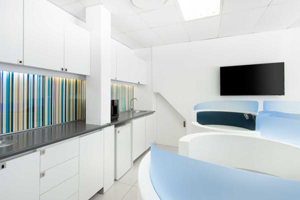 Enjoy colourful interiors and clean, simple spaces this stylishly designed building offers a great change of scene for clients and visitors. When you need to step outside, the area is awash with restaurants, cafes and gyms perfect for after work.