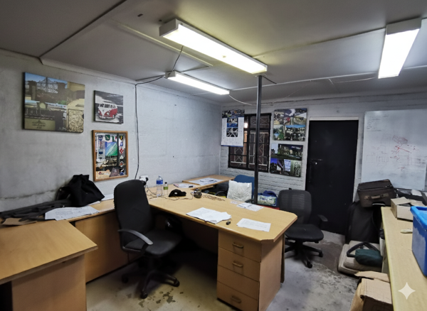 Workshop Control: Private Supervisor''s Office strategically overlooking the main workshop floor for oversight.