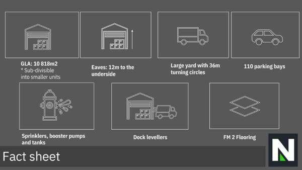 Unlock operational excellence with these customizable warehouse units in the prestigious Aeroton Business Park, offering spaces from 5,000m2 to 23,000m2. Designed for logistics, manufacturing, and large-scale distribution, each unit features 12m eave heights, on-grade roller shutter doors, dock levelers, full sprinkler systems, and expansive paved yards for seamless truck movement and efficient loading operations.