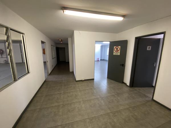 This industrial unit consists of 183m2 office space split over two floors and 194m2 dedicated warehouse space. The office component comprises a reception area, one office and ladies & gents bathrooms with shower on the ground floor, and a large open plan looking onto the warehouse, an office and a single bathroom on the first floor. The warehouse is approximately 195m2, has a 5 meter on-grade roller-shutter door with 6 meters height to the lowest point of the eaves and three phase power with 80 amps per phase available. The warehouse has two storage areas, one of approximately 15m2 and the other 30m2. This 378m2 industrial unit is within a secure complex offering 24 -hour security and access. The adjacent unit of 378m2 is also available to let, which combined offers the user a total of 756m2.
