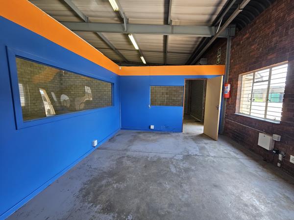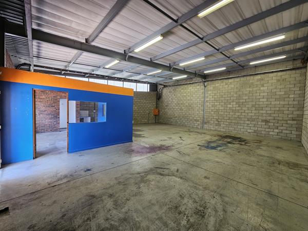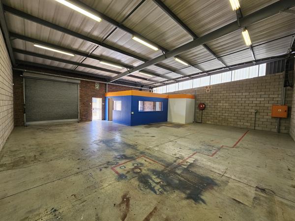 The unit features a neat office area, a small kitchenette, and a single ablution facility for convenience. It is equipped with 3-phase power and a generously sized roller door, ensuring easy loading and offloading for day-to-day operations.