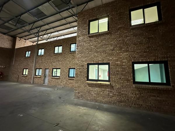 The offices are A-grade with modern finishes, including a glass-partitioned boardroom, ground-floor and first-floor ablutions, and a kitchenette with granite countertops overlooking the warehouse. Both office levels feature windows facing the warehouse, ensuring excellent visibility and operational oversight.