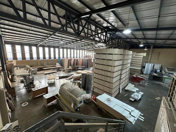 Additional features include staff ablutions with both male and female showers, a kitchenette, and a canteen area. The first-floor offices overlook the warehouse, ensuring good operational oversight.