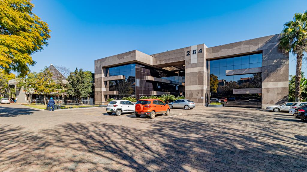 The granite and glass building at number 284 Oak Avenue is located on a prominent corner in the main Ferndale business node. A move in ready suite of 359 m2 is immediately available. The outside facade of the building provides a corporate modern image for a business wanting to impress clients in one of the best office buildings in Ferndale. Floor to ceiling windows provides a sunny bright north facing working environment.