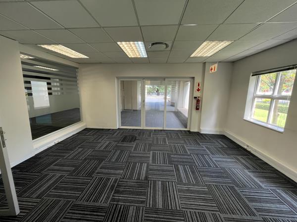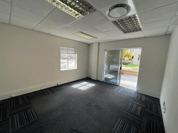 This well designed space offers a welcoming reception area leading into a spacious open-plan workspace complemented by private offices. The unit includes a modern kitchen and canteen area, with multiple access points to a generous patio featuring built in braai facilities - perfect for staff functions, client entertainment or informal breakaway sessions. An ideal turnkey solution for any business looking for convenience, comfort and a great working environment. The park offers: