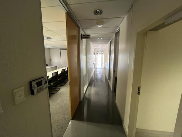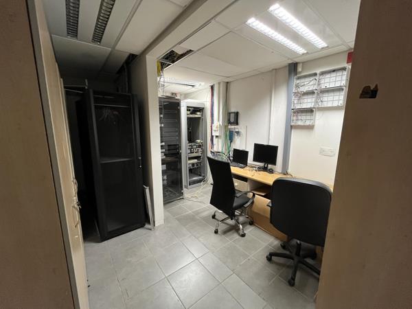 Rare lower ground floor with access from reception area, unit consists of 8 seater meeting room, technical area that has access to loading area with a roller shutter door. Balance of office consists 3 x large boardroom or training room, large server room, private offices, reception area that opens up onto large patio area and lovely kitchen/ canteen area with patio with stunning views of Randburg. Communal bathrooms.The building offers:
