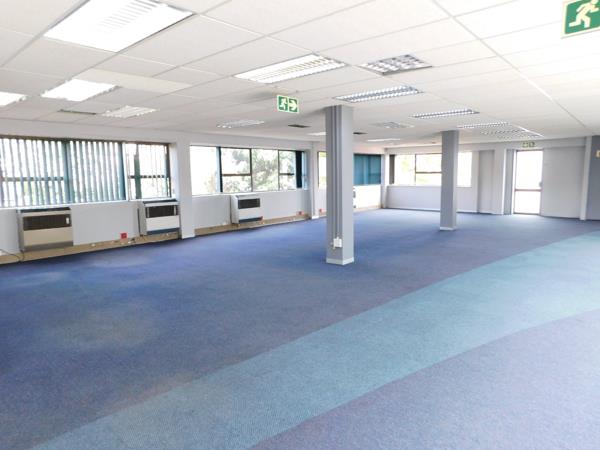 This 384 m2 office suite comprises an attractive inviting reception area, two large open plan bright work areas and a few smaller cellular offices. The space is expansive and ideal for low volume call centres, admin / sales offices or any business needing open plan areas in an easily accessible area with excellent public transport facilities close by. The premises are available immediately or on a date to suit and the interior can be changed to suit using the allowance provided by the owner. Fibre accessibility into the park, secure basement and open parking and on site 24 / 7 security guards forms a part of the offering.