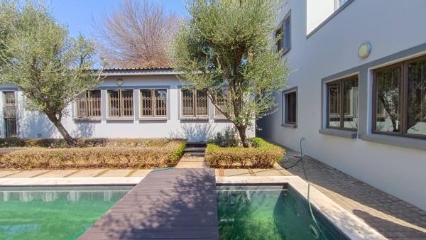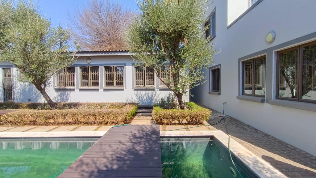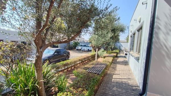 Located in The Gardens, a leafy neighbourhood of Johannesburg, this exquisite commercial property offers a serene and functional workspace, ideal for professionals seeking a peaceful yet professional environment far from the madding crowd. The property comprises two separate buildings, each with its own unique charm and amenities. The exterior boasts a tree-lined pool surrounded by mature olive trees, creating a calming atmosphere complemented by a water feature and the soothing sounds of bird song. Practical features include ample outdoor parking, three garages, two entrances, two pedestrian gates, and two storerooms, ensuring convenience and security for tenants.