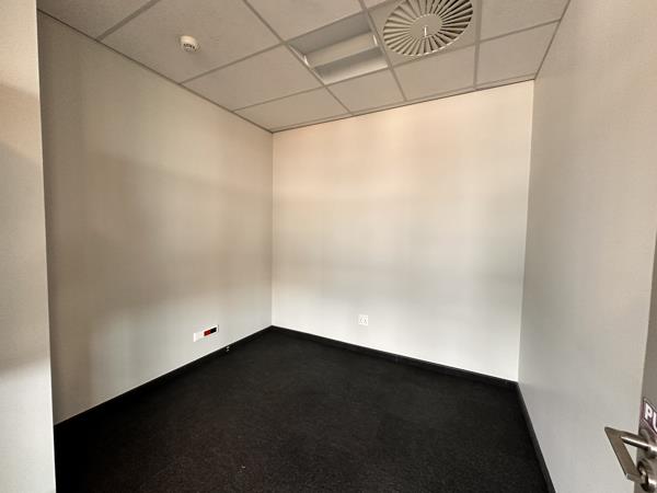 Communal bathrooms are located conveniently on the same floor, and the building is equipped with backup power and water supply. Holding a prestigious 4-Star Green Star Rating, it reflects modern sustainability standards. Tenants benefit from a welcoming reception area, secure parking at R1,200 per bay, and a prime location within walking distance of The Zone, Rosebank Mall, and the Gautrain. Rental excludes utilities, parking, generator recovery, and VAT.