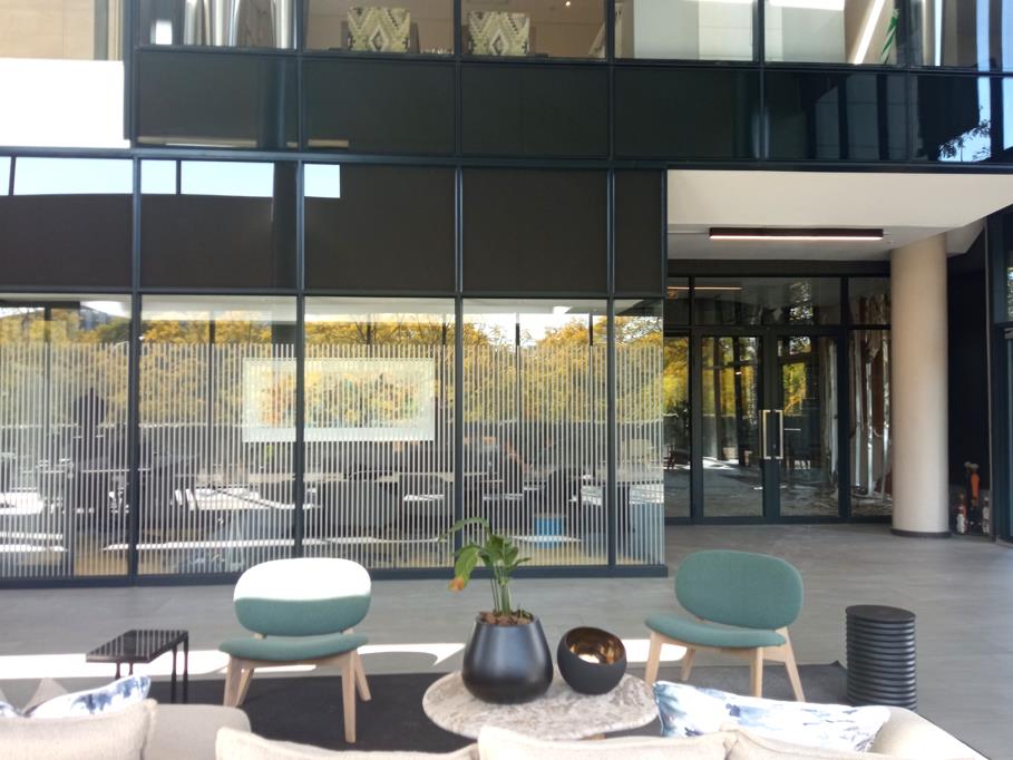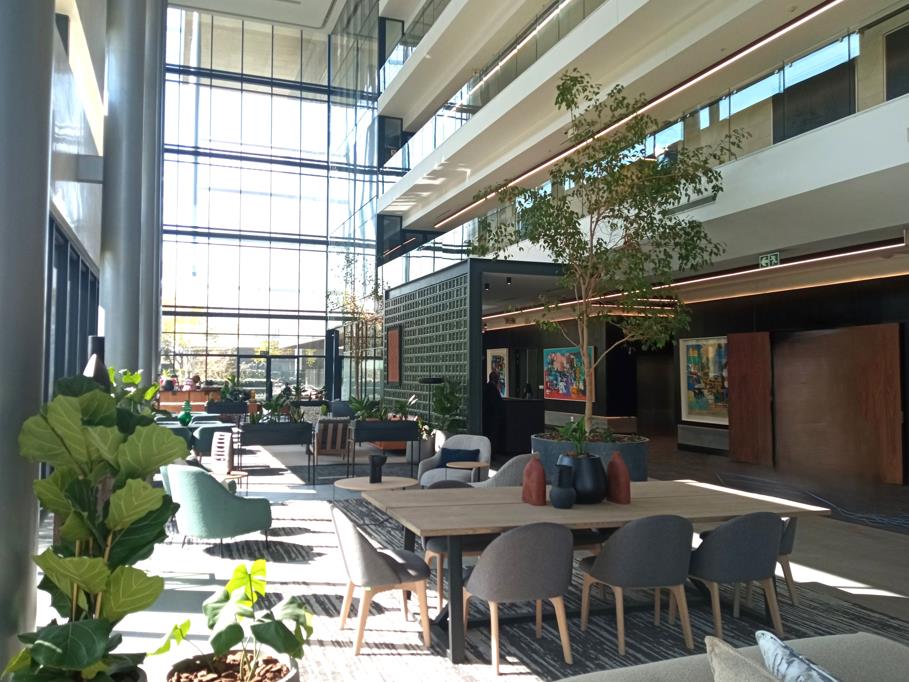 Inspire and be inspired every work day in this dramatic, light- and art-filled green space.