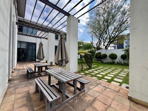 The building offers lush gardens with braai facilities, perfect for corporate events. The entire building is solar-powered, and offers sophisticated common areas.