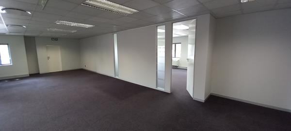 his 370 sqm ground floor office is available to let at 24 Peter Place Office Park in Bryanston, offering a well-designed and functional layout. The unit comes fitted out with a boardroom, private office suites, and a fully equipped kitchen, making it ideal for companies seeking a professional and ready-to-use workspace. The design allows for both private and collaborative working environments, ensuring flexibility for various business needs.