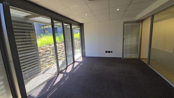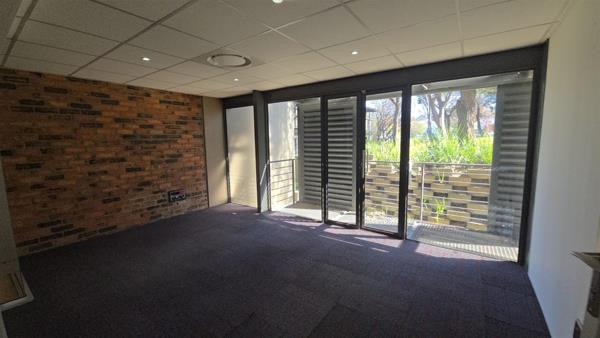 The office features access to a balcony that overlooks beautifully maintained gardens and includes a private, exclusive-use kitchenette for added convenience.