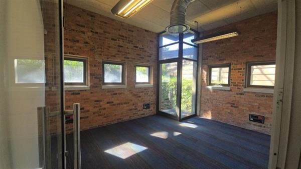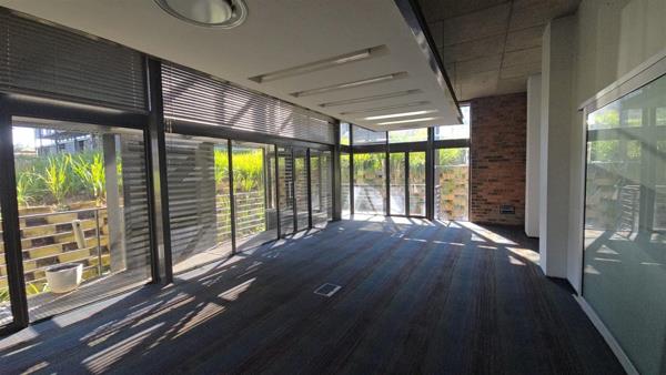 This 320sqm premium office space is located in the sought-after area of Bryanston, offering a sleek, modern aesthetic and a unique blend of red brick and iron elements in its architectural design.