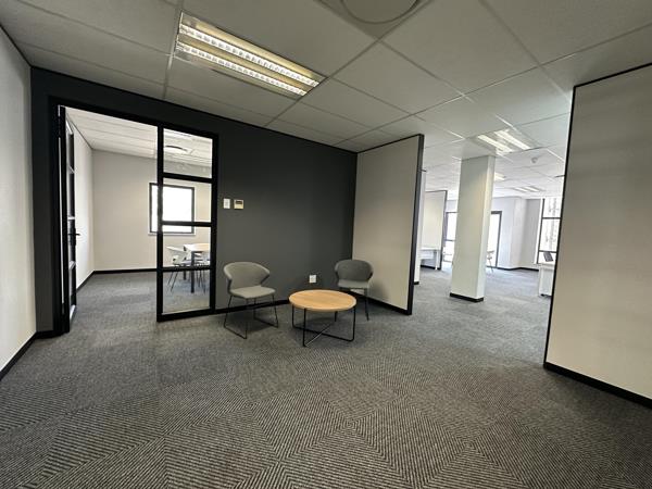 This 130m2 office suite offers a ready-to-occupy, professional workspace designed to meet the demands of modern businesses. The suite features its own private boardroom and a kitchenette, providing a fully self-contained environment ideal for teams seeking both productivity and independence. Fully furnished with contemporary office furniture, the space allows tenants to move in and commence operations immediately, eliminating the need for additional setup or expenditure. Security and operational continuity are key priorities, with 24-hour access control, on-site monitoring, and a dedicated generator ensuring a safe and uninterrupted working environment. The rental is structured as a single all-inclusive amount, covering consumables and simplifying budgeting for tenants. The flexible layout accommodates both collaborative teamwork and private office needs, fostering efficiency and adaptability. Strategically located within a well-managed commercial building, the suite combines a professional atmosphere with convenience, comfort, and reliability. This turnkey office solution is ideal for businesses seeking seamless operations, modern amenities, and a prestigious address in a secure and accessible commercial hub.