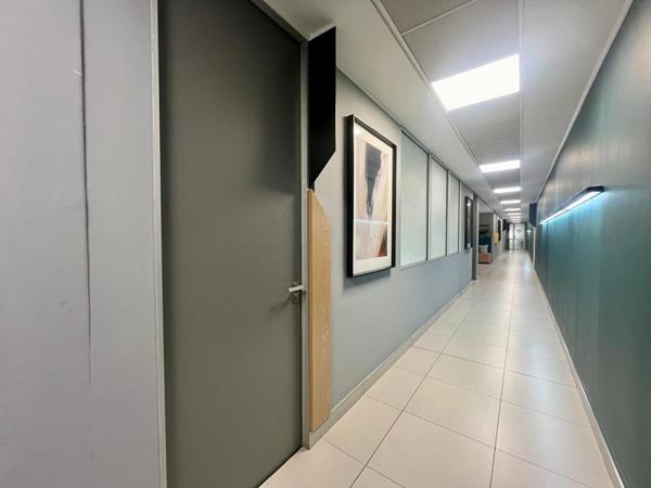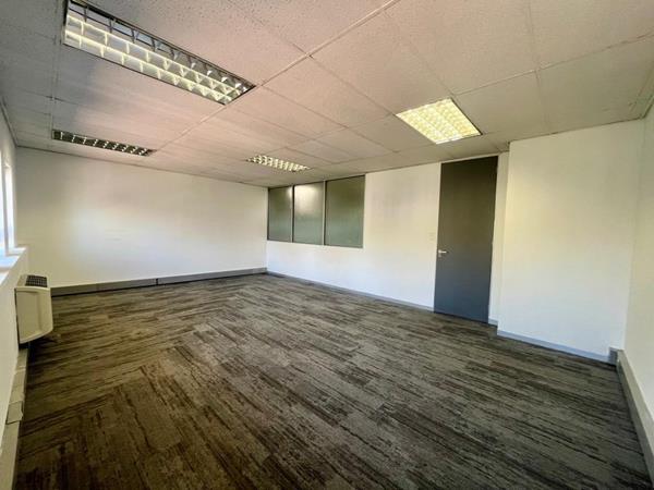 This particular office is 43m2 and offers a carpeted, open-plan office space, with windows that flood the room with ample natural light