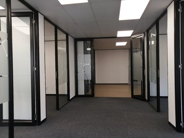 This 131m2 office premises consists of a reception and waiting area. There are four cellular offices and one boardroom within the premises. Should you wish to customise the premises, an installation allowance will be provided. Common area kitchen and ablutions are allocated to the suite.