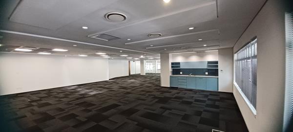 Located on the ground floor of Building B, this expansive 1060m2 office offers a versatile workspace with a whitebox finish, providing a neutral canvas ready for customization. Tenants can design the layout to suit their business needs, whether by installing drywall partitions for private offices or maintaining an open-plan environment. The space includes a private kitchenette and shared bathroom facilities for convenience. A 50m2 balcony adds a unique feature, perfect for outdoor breaks or informal meetings. Security is prioritized with 24-hour surveillance and access-controlled boom gates, ensuring a safe and professional environment. Parking is available with open bays at R550 per bay and basement bays at R750 per bay. The offices strategic location provides easy access to the property while remaining close to major amenities, restaurants, and public transport links. This combination of flexibility, accessibility, and modern features makes it an ideal choice for businesses looking to establish a professional and adaptable presence in a prime commercial hub.