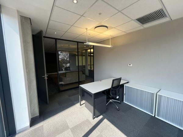 Modern fully serviced office, situated in a well-established building on Ferguson Road, in the heart of Illovo''s business node. This space measures approximately 78sqm is available for rental occupation for R21,840.00 per month excluding VAT and utilities. Office space has a neat fit out equipped with furniture, telephone lines and Wi-Fi connectivity. Well maintained flooring, standard office lighting and air-conditioning. Unit has an open plan lay out with single partitioned offices spaces with modern finishes and complimentary boardrooms. Additional cost of water, electricity and parking at R1,00/bay.