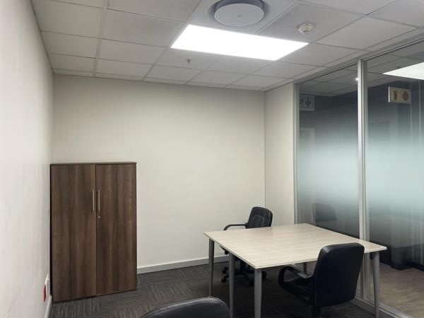 This 21 square meter ground floor office suite is fully serviced and furnished, available to let at R207 per square meter. Designed for plug-and-play convenience, the rate includes furnishings (R135/m2), WiFi (R10/m2), utilities (R50/m2), and a generator levy (R12/m2). The unit is ideal for professionals or small teams and features air conditioning, secure access, and backup systems for uninterrupted operations. Parking is available at fixed monthly costs: R520 for open bays, R630 for covered, and R750 for basement bays. Gross rental is exclusive of VAT and the selected parking option.
