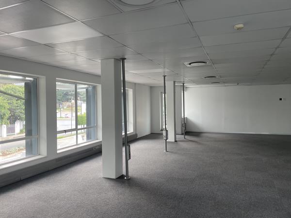 This first-floor office unit offers 475 square meters of versatile, light-filled space to let at R120 per square meter. Located in a professionally managed building with a high-grade finish, the premises are ideal for businesses requiring flexibility for single or multi-tenant layouts. The unit is air-conditioned and supported by backup power and water systems. Parking bays are available at fixed monthly rates: R520 for open, R630 for covered, and R750 for basement options. Please note the gross rental is exclusive of VAT, utilities, and the parking option selected by the tenant.