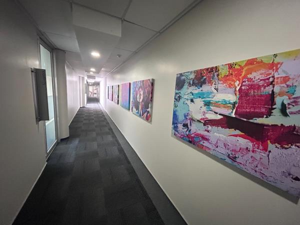 OFFICE DESCRIPTION: This office has a glass entrance with tenant signage, large open plan area, wooden floors and a bank of north-facing windows and 2 closed offices.