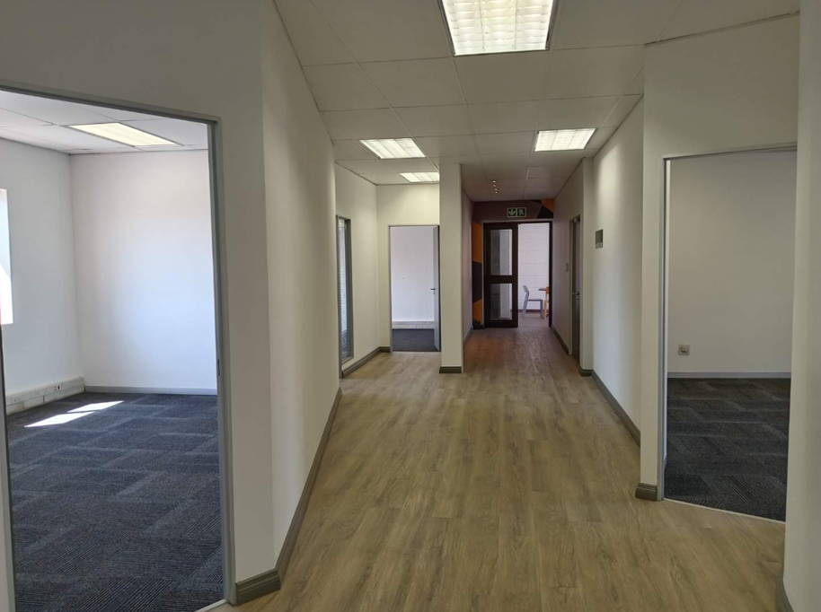 This office space has 12 offices, 3 boardrooms and 2 balconies. The space has new flooring and windows throughout the entire space for great natural lighting. The building has an elevator and 24/7 security. This is a nice size second-floor office measuring 550m2 and available immediately. The premises has good natural lighting and ventilation with lovely flooring still in place. There is also access to two exclusive-use enclosed balconies where functions can be held. There is a current fit-out in place which consists predominantly of cellular offices and meeting rooms.