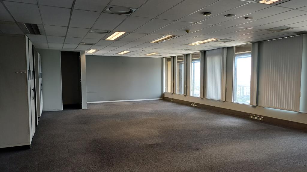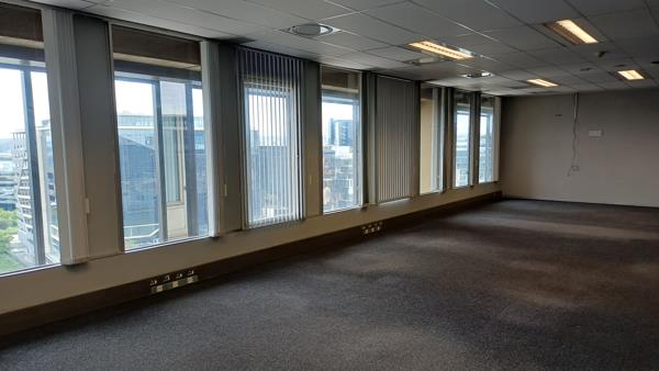 This office suite has plenty of windows letting in natural light and great views over Sandton and beyond. There is a private large office or boardroom, a fitted dry kitchen and a server room. Extra individual offices can be created if required with the Tenant Installation Allowance.