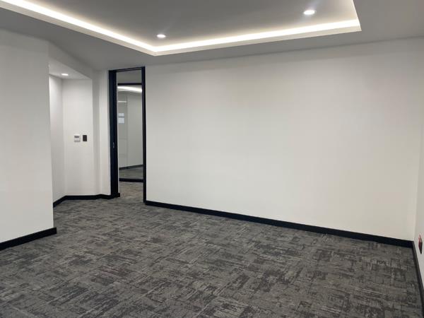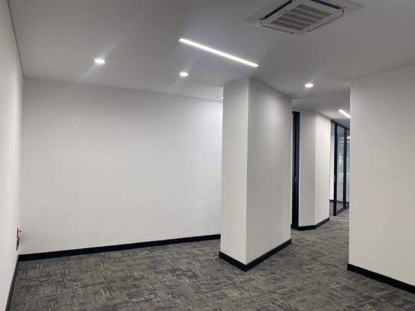 This sleek black-and-white ground floor office at Commerce Square offers a modern, professional setting with abundant natural light streaming through large windows. The spacious layout features one boardroom, four private offices, a welcoming communal working space, and a well-appointed kitchen. Surrounded by beautifully landscaped gardens, the premises provide a tranquil work environment in the heart of a prime business hub.