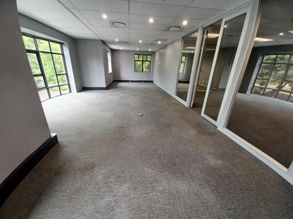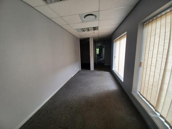 Block 6 Austa Houses a green star-rated building., This first-floor office comes fully fitted. The building features a basement and open parking, available at rates of R550/bay/month and R750/bay/month, respectively.