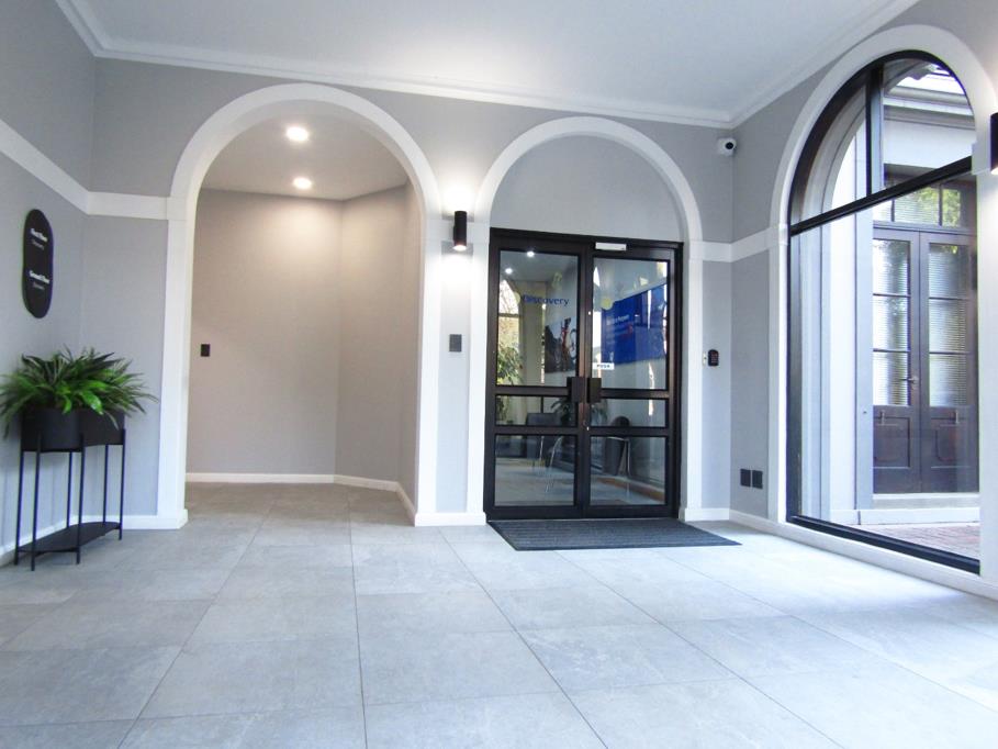This adaptable commercial space is ideally suited for a range of businesses seeking a prestigious address in Sandton. It offers a professional environment complemented by visible security features, including CCTV surveillance and keypad entry for enhanced peace of mind. Enjoy access to pleasant outdoor areas, including a spacious paved patio and an outdoor balcony, perfect for breaks or informal meetings. The well-maintained exterior, mature trees, and inviting brick paver pathways contribute to a welcoming corporate image.