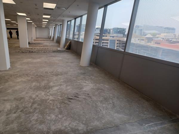 The 6th floor is presented as a white box with great natural light and views over Johannesburg.