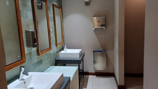 This turnkey office consists of a reception leading to two meeting rooms and a boardroom with a balcony, 4 individual offices, open plan area, well fitted kitchen and server room/filing room. There are also modern toilets. Should you require changes made there is a Tenant Installation Allowance of R561 a sq m for a 3 year lease and R1,020 a sq m for a 5 year lease.