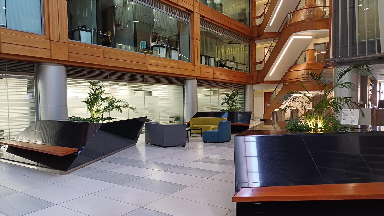 This character filled A+ building offers a welcoming reception with a spacious seating area, a coffee shop/restaurant, gym and shower facility. There is also access to the Discovery Retail area. There is 24 hr security, back-up power, water and fibre. Sandton City is walking distance and it is close to public transport. Minutes from the Gautrain Station.