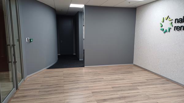 The good size reception leads to a boardroom and an office. There is a large modern kitchen with pause area, storeroom, 2 private phone booths and open plan area. There are large windows providing natural light and great views over Sandton and beyond.