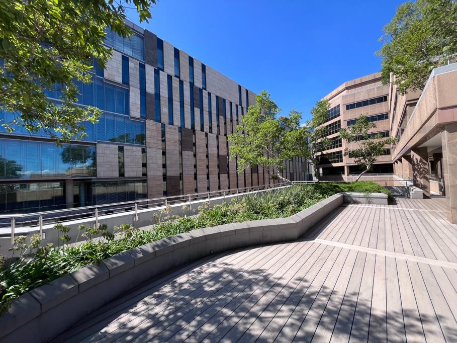 Beyond the immediate office environment, the building offers a modern outdoor deck and communal space, providing a refreshing area for breaks or informal discussions amidst integrated greenery. This metropolitan location ensures excellent accessibility for both staff and clients, positioning your business within a vibrant commercial hub. The clean, well-maintained premises reflect a commitment to a high-quality work environment.