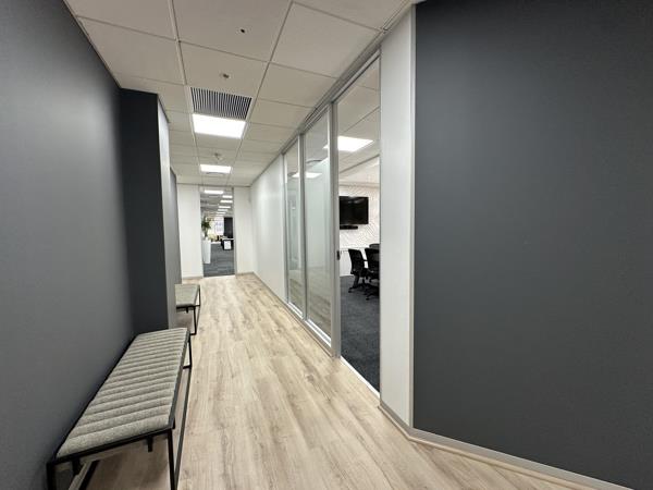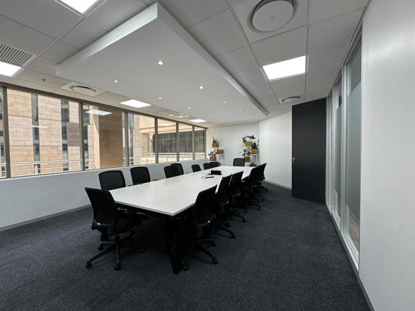 This stunning 552sqm office space in the heart of Sandton offers a beautifully designed, move-in-ready fit-out ideal for modern businesses. The layout includes two boardrooms, two smaller meeting rooms, two private offices, and a spacious open-plan area complemented by a stylish canteen that opens onto a 140sqm balcony with breathtaking views of the Discovery Building. The property features a 4-Star Green Rating (GBCSA), backup power and water, full on-site security, and a professional management team. Tenants enjoy access to exceptional amenities, including a full-day restaurant and gym facility within the building, as well as immediate proximity to Discovery Bank, Sandton City, and other retail conveniences. Located just 750m from the Gautrain Station, this premium workspace offers the perfect blend of sophistication, functionality, and accessibility.
