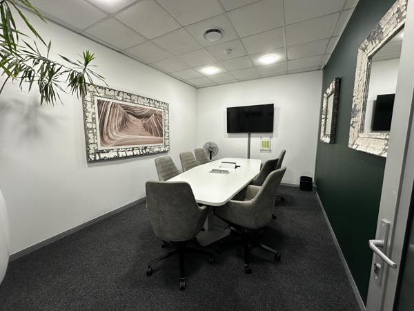 This turnkey, fully furnished office space in Sandton offers a sleek and modern environment designed to support productivity, collaboration, and convenience for growing teams. With bookable classic-style boardrooms and meeting rooms, fully serviced kitchens stocked with complimentary tea and coffee, and inviting common areas for casual breaks or networking, the space ensures a seamless working experience. Supported by 24/7 security, backup power, and water systems for uninterrupted operations, it is also ideally located near major bus and taxi routes for easy commuting, all within a vibrant office community where everything is taken care of.