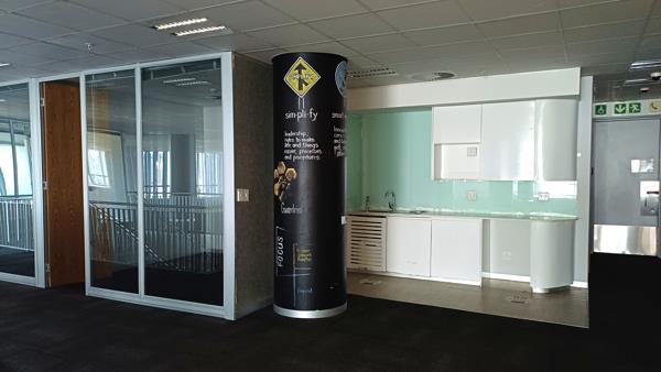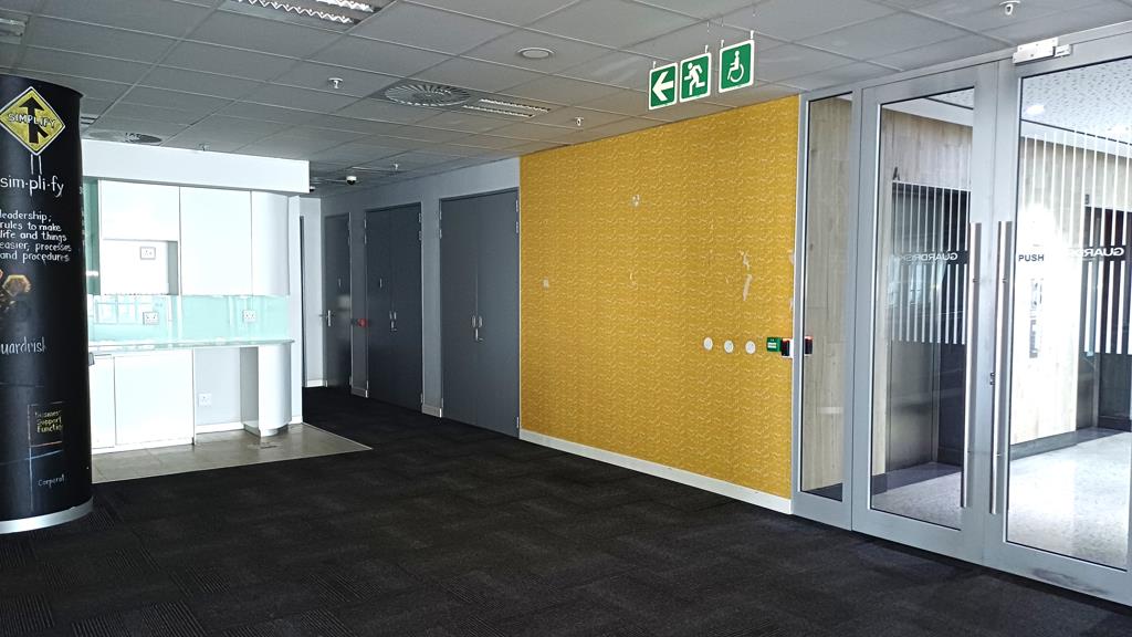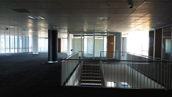 This office suite comprises of two entrances, open plan kitchen, various size individual glassed offices, large open plan areas and great views over Sandton and beyond. For the large company, there are interleading stairways to the 2nd floor 899.30 sq m, the 1st floor 984.04 sq and the ground floor 933.20 sq m. They can also be separated for lease of each floor.