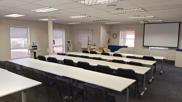 Situated in a well-maintained, landscaped estate with 24-hour access control, the property provides a secure and tranquil working environment. It features a dedicated kitchen and 20 shade-net parking bays, available at R470 per bay.