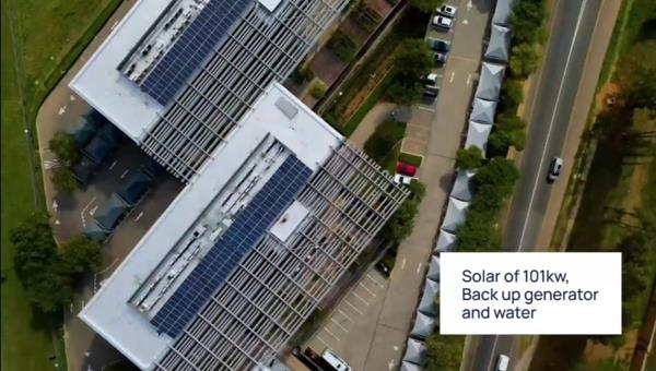Multiple outdoor spaces allow for breakaway areas and ease of movement between the buildings. Each building has full redundancy measures with respect to generator and water capacity, with efficiencies supported by a 4-star green rating from the Green Building Council of South Africa. These efficiencies are complemented by a solar installation of 101kw.