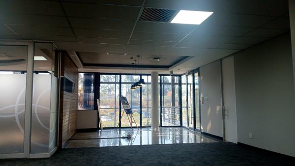 The space is exceptionally well-kept and designed to inspire productivity, with large windows providing views of the highway and outer Woodmead. It offers a combination of private executive offices, a boardroom, and a spacious open-plan area, making it ideal for dynamic business setups.