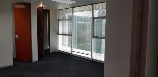 The semi-serviced offices are a mix of open-plan & separate offices with glass partitions. Entrances are well-finished & opulent. Back-up power & water on site. There is a separate conference & venue hire and a restaurant on site. The property is well-managed and have staff on site to assist with any queries. Access is manned at both entrances. Net rental is R125.00/sqm ex VAT plus rates & levies of R54.00/sqm. Parking is in basement (R824.00/bay), shade (R680.00/bay) & open bays R450.00/bay).